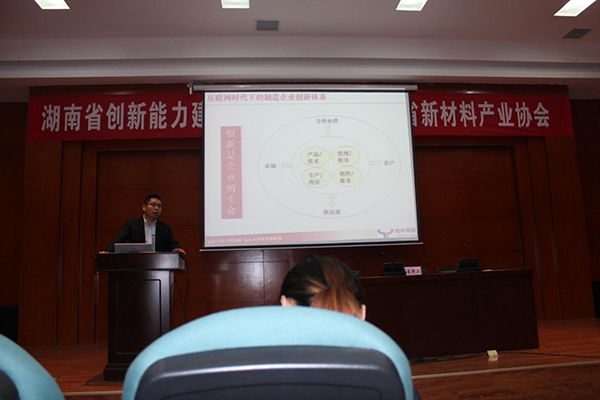 20141029日下午,湖南省創(chuàng )新能力建設專(zhuān)題講座在長(cháng)沙科力遠麓谷園樞綜合樓多功能廳召開(kāi)。該會(huì )由省發(fā)改委、湖南省新材料協(xié)會(huì )組織主辦,旨在通過(guò)整合社會(huì )各類(lèi)資源,構建符合產(chǎn)業(yè)發(fā)展規律和具有湖南特色的自主創(chuàng )新體系,全方位推進(jìn)新材料等七大戰略性新興產(chǎn)業(yè)全面快速發(fā)展。湖南新材料協(xié)會(huì )執行會(huì )長(cháng)張雙奇主持了會(huì )議,省發(fā)改委高技處副處長(cháng)鄧小云、湖南協(xié)會(huì )全體會(huì )員、專(zhuān)家委員會(huì )委員、監事會(huì )監事等120余人參加了會(huì )議。